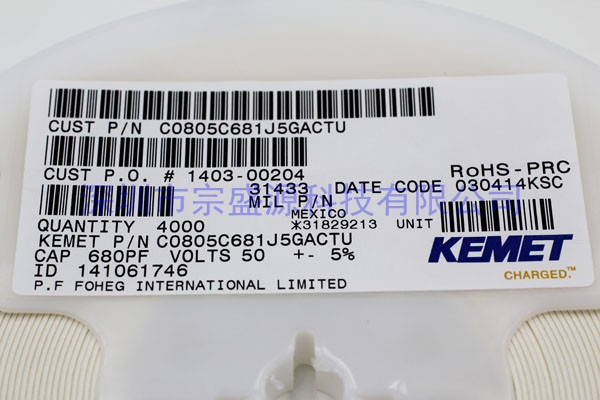 產品名稱:KEMET陶瓷電容 0805 50V 0.68UF C0805C681J5GACTU