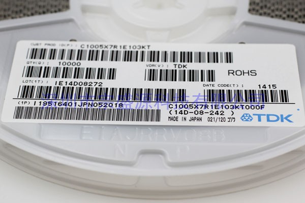 產(chǎn)品名稱:TDK陶瓷電容 1005 25V 0.01UF C1005X7R1E103KT