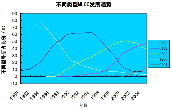 從上表可以看到 2004年為0603和0402價格的重合點,隨著時間的推移0402 的價格即將會大幅下降而0603 的價格則基本持平,目前像SUNCORP、 ELITE、LENOVO、IDT、BBK 等國際國內知名企業已經開始批量應用0402規格電容產品,為適應MLCC 的發展趨勢奠定了良好的過度期。我們建議終端制造商結合自身產品特點,綜合考慮 MLCC 發展趨勢,合理選用性價比高、高可靠性的 MLCC,在未來的激烈競爭中牢牢掌握主動權。