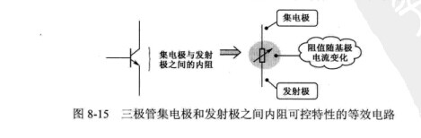 如圖8-15所示是三極管集電極和發射極之間內阻可控特性的等效電路。