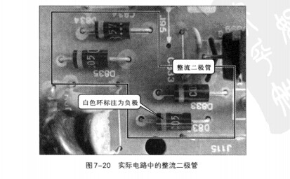 可以看到,在黑色的外殼上有白色標注的一端即為整流二極管的K極(負極),另一端為二極管的A極(正極)。