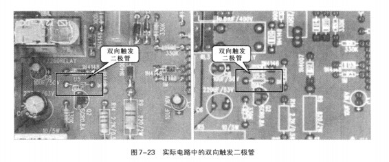 ⑤雙向觸發二極管的標注與識別   雙向觸發二極管在電路板上常以"DIAC"的英文簡寫形式或符號形式進行標注。