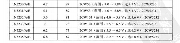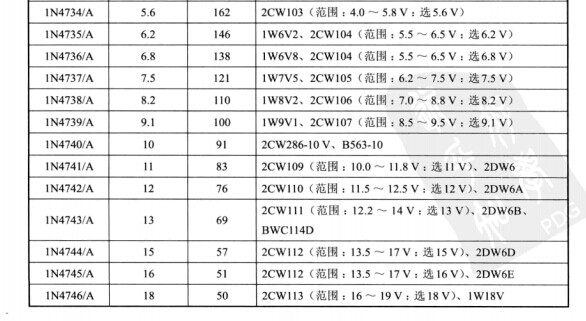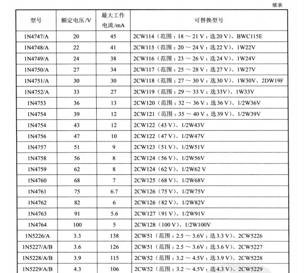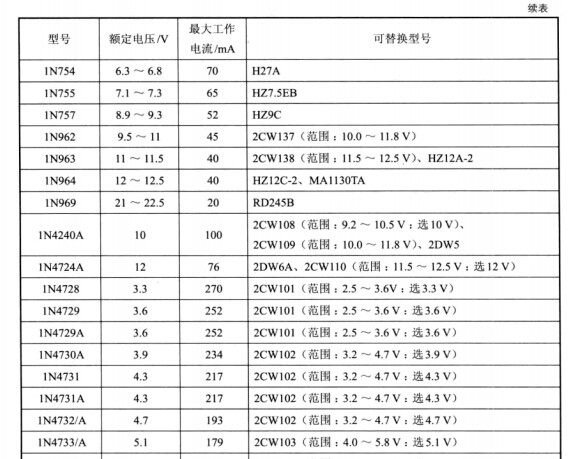 表7-8 常見穩壓二極管型號及可替換型號速查表