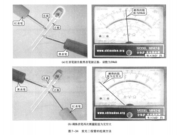 發光二極管的檢測操作見圖7-34。