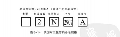 美國生產的晶體三極管的命名規格見圖8-14。